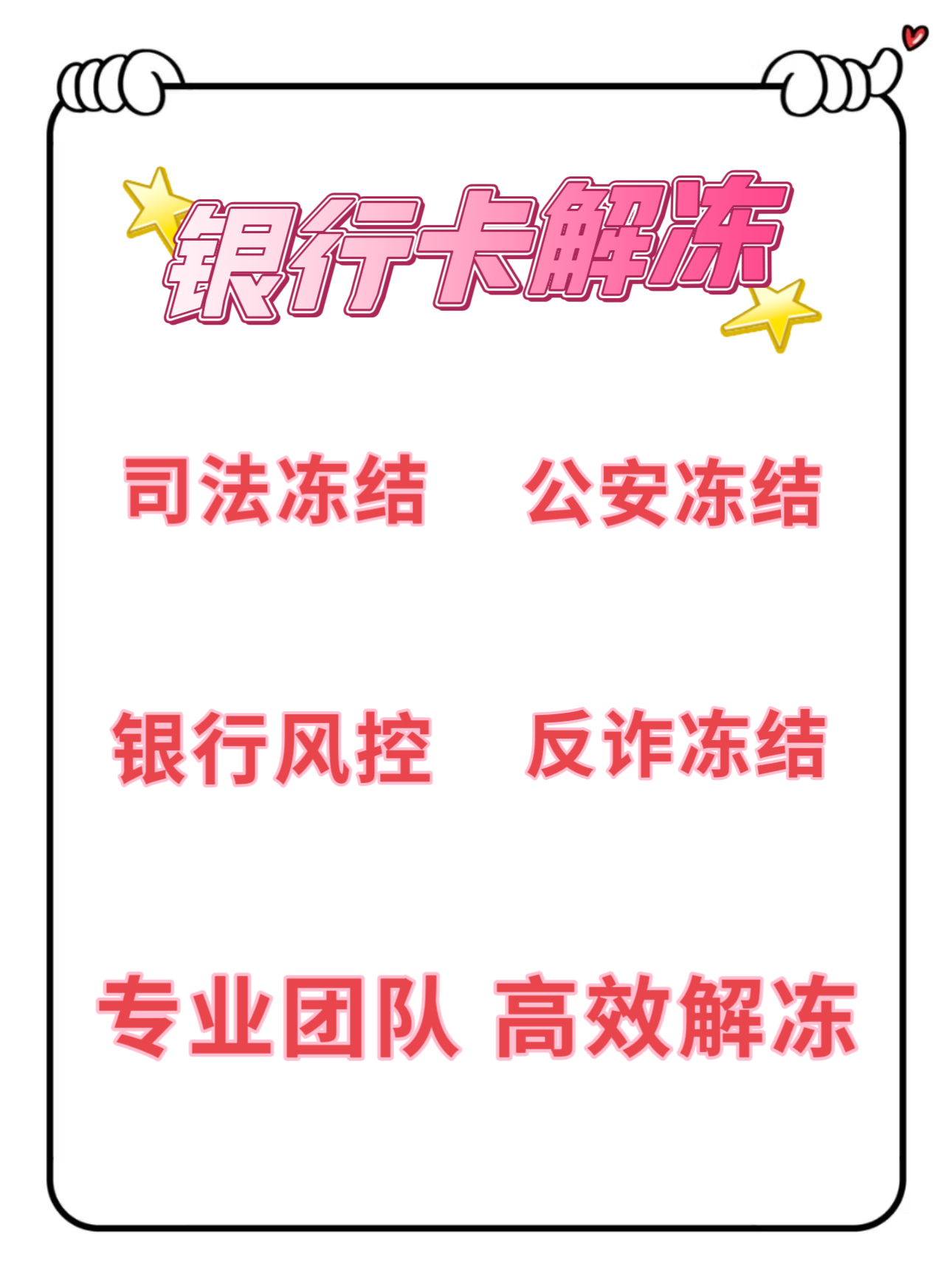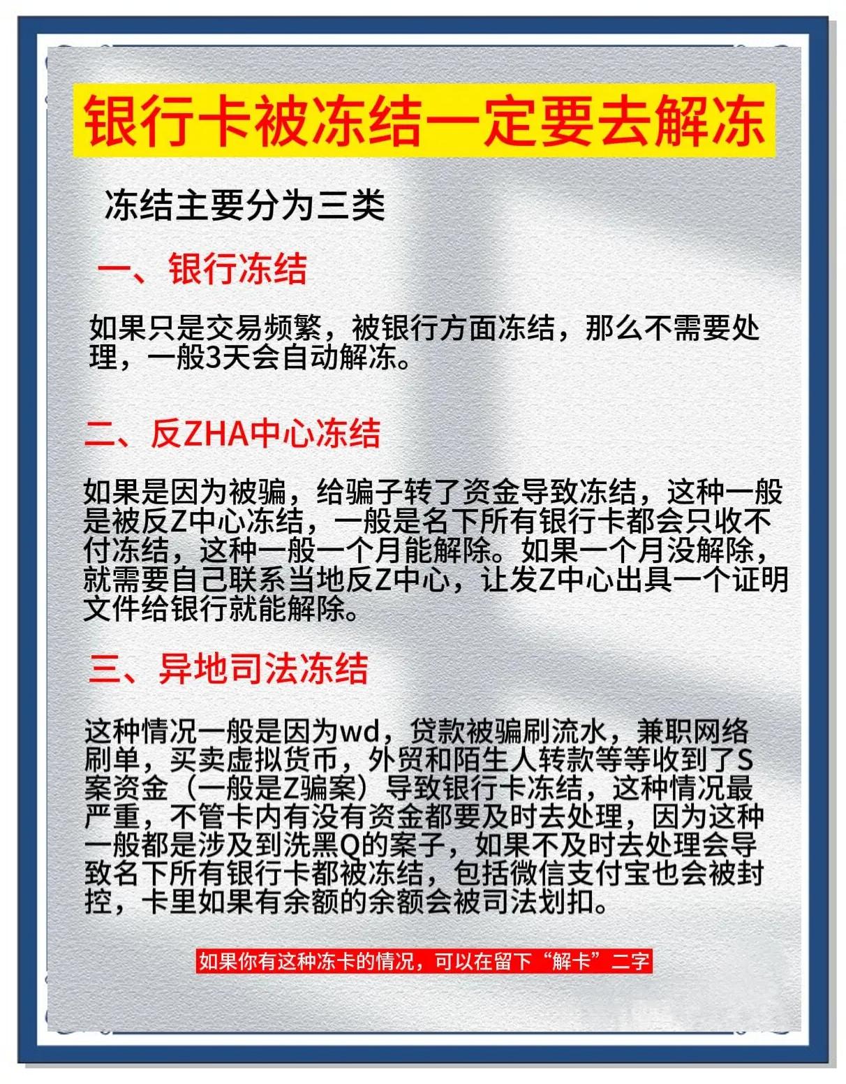 七种不能冻结的卡的解冻时间视冻结性质而定,与被冻结的次数没有关系以下是具体的解冻时间及相关说明一暂时冻结 解冻时间持卡人申请解冻后,银行卡通常可以即时解冻,或者在七个工作日以内进行解冻说明暂时冻结通常是由于一些临时性的原因,如账户出现异常交易密码输入错误次数过多等在持卡;1一般情况下,法院冻结银行卡会通知的,冻结的期限最长不超过两年2根据最高人民法院关于人民法院民事执行中查封扣押冻结财产的规定第一条人民法院查封扣押冻结被执行人的动产不动产及其七种不能冻结的卡他财产权,应当作出裁定,并送达被执行人和申请执行人3采取查封扣押冻结措施需要有关单位;一般情况下,黑户银行卡是不会被冻结的但是,如果是银行经过起诉之后,根据法院的判决向法院申请强制执行冻结银行卡的,法院是会冻结黑户银行卡的具体条件成为银行黑户之后,很多人会担心自己办理的银行卡,或者之前的银行卡会不会被冻结,其实,如果银行卡被冻结的话,是有一定的附属条件的,也就是。